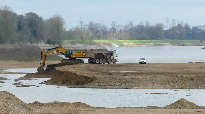 De grindwinning en de afgraving van de nevengeul in Maasband liggen op schema. Volgens de huidige planning wordt de grindwinning voor de zomervakantie afgerond en kan met de inrichting van het gebied worden begonnen. Rijkswaterstaat heeft inmiddels besloten dat er met het oog op toekomstige stroomsnelheden extra oeverbescherming moet worden aangebracht op het traject vanaf de Hoxweerdbrug tot het einde van de nevengeul.