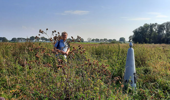 Jan is altijd opgetogen als hij weer op een Grenspaal stuit |